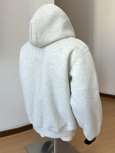 25年新款白灰色开衫卫衣男款秋季cleanfit双头拉链外套美式连帽衫