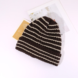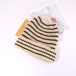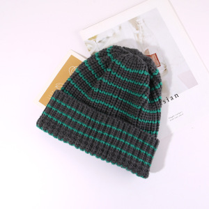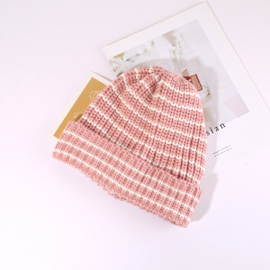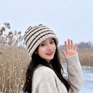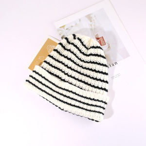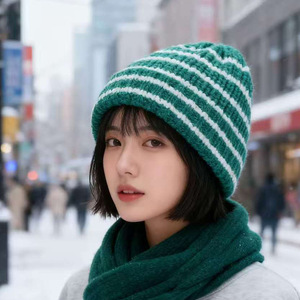 韩系条纹针织帽女秋冬大版型显脸小护耳防寒帽情侣保暖毛线帽子潮