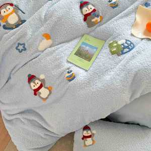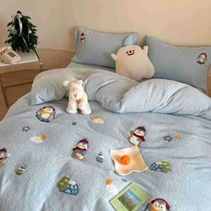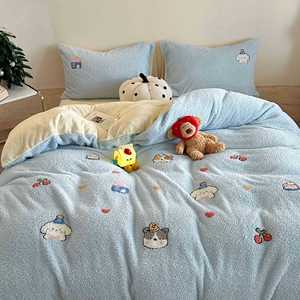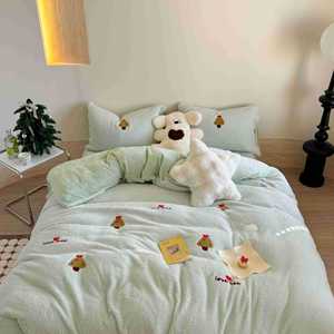 秋冬季加厚保暖泰迪绒牛奶绒四件套珊瑚绒法兰绒被套床单床上用品