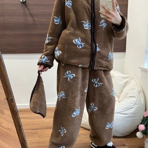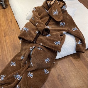 【实拍】蓝丝带连帽抽绳宽松拉链睡衣套装冬季毛绒加厚保暖家居服