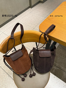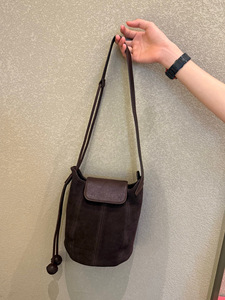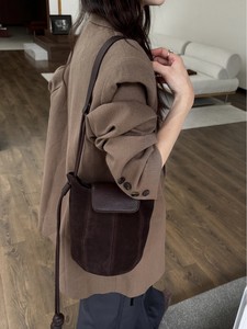 欧洲站磨砂真皮斜挎水桶包小众设计师女包秋冬复古女包麂皮绒bag