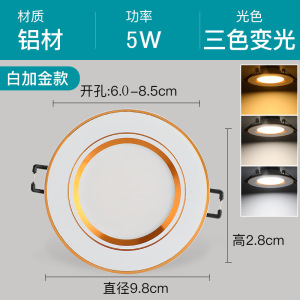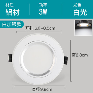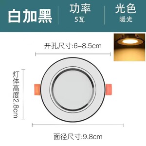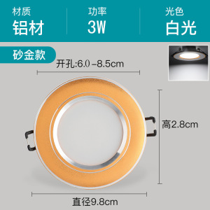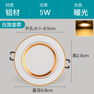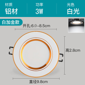 筒灯led3W5瓦天花射灯嵌入式客厅孔灯家用铜灯开孔5/6.5/7/8公分
