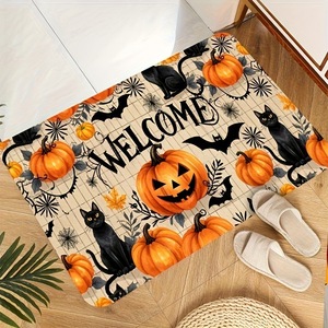 跨境temu万圣节南瓜图案入户玄关门口防滑耐脏地垫卧室装饰地垫
