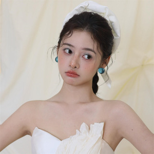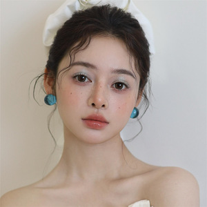 蓝色圆形耳钉新款彩色简约银针个性耳饰气质百搭高级耳环饰品女