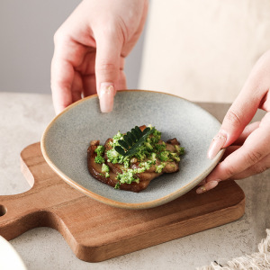 日式粗陶瓷碟点心碟异形甜品火锅调味碟复古菜碟子创意小吃碟餐具