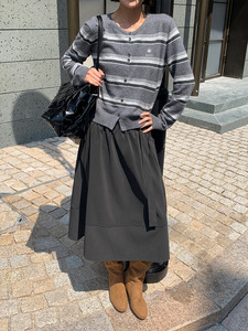 MOXI十三行女装2025秋季新款韩系休闲系带中长款高腰显瘦半身裙子