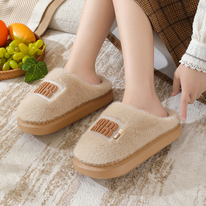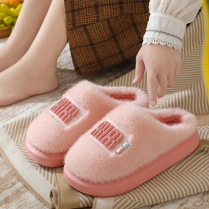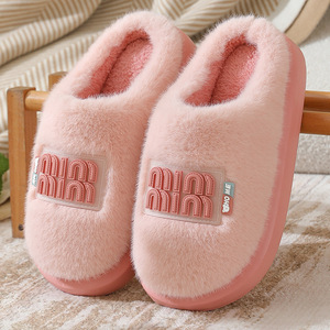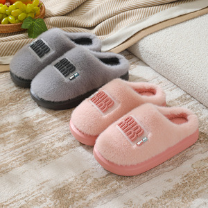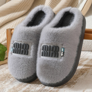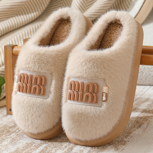 情侣款冬季情侣米貂毛绒拖鞋室内家居用静音EVA厚底保暖棉拖鞋女