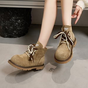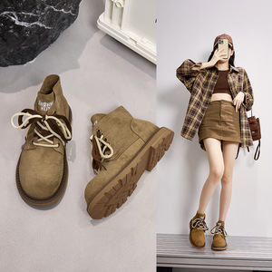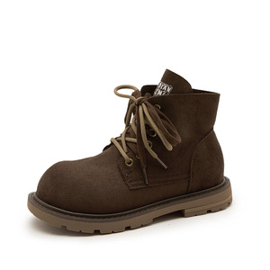 真皮厚底圆头马丁靴女2025秋季新款复古短筒大黄靴百搭英伦风短靴