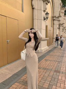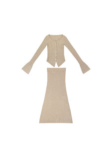 早安樊樊温柔韩系氛围感微喇袖口针织上衣+半身裙套装女春两件套