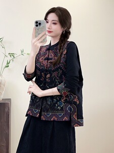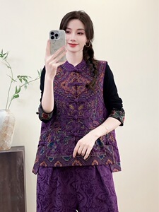 2025秋重工刺绣国风宽松女棉麻马甲秋季立领盘扣民族风女式坎肩