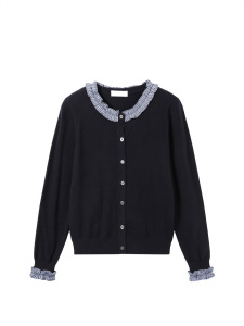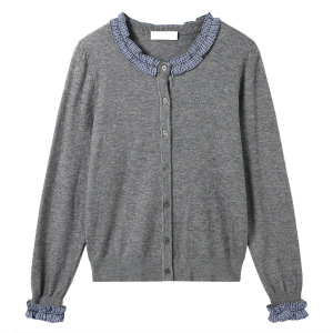 韩系高级感木耳边休闲针织开衫秋装女装新款毛衣长袖气质上衣外套