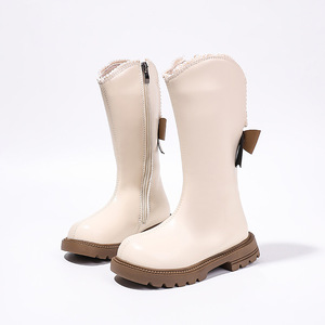 儿童长筒靴女童鞋加绒软底高筒马丁雪地靴时尚珍珠蝴蝶结公主靴子