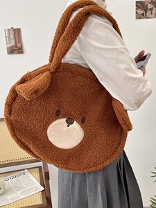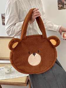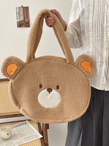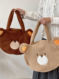 411124 新款大容量可爱小熊单肩包女卡通毛绒包秋冬款手提托特包