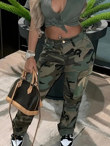 2025年亚马逊新款女装街头个性时尚迷彩印花多口袋百搭工装裤长裤