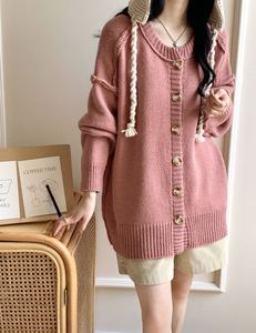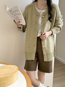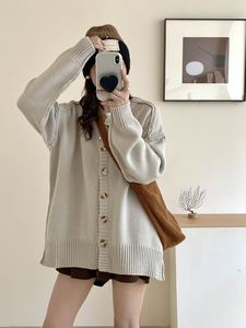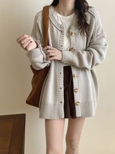 韩版纯色反套毛衣外套女秋冬新款复古设计感慵懒个性拼接针织开衫