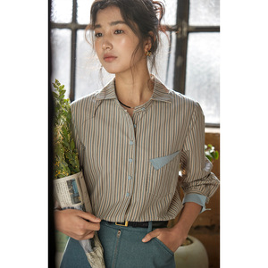 solighter 法式复古撞色条纹长袖衬衫女2025秋季新款衬衣上衣
