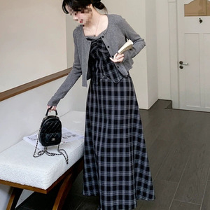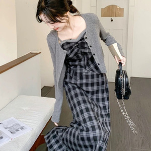 法式复古拼接格子桔梗裙套装裙半身裙三件套2025新款时尚百搭套装