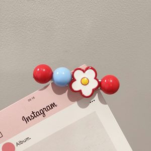 韩系新款红蓝撞色圆珠花朵发夹可爱碎发前额侧边发卡刘海夹头饰批