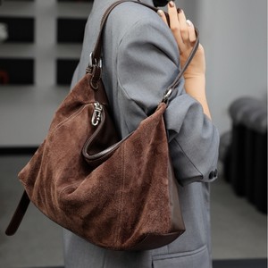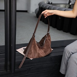 头层麂皮绒腋下包2025秋季新款头层植鞣牛皮单肩包大容量手提包女