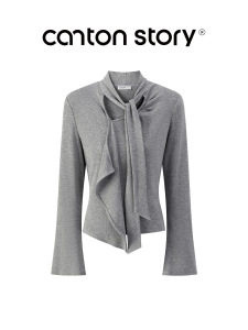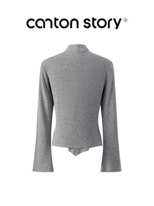 羊城故事 韩系灰色长袖t恤女2025秋季新款设计感时尚辣妹修身上衣