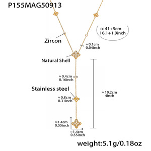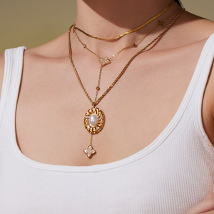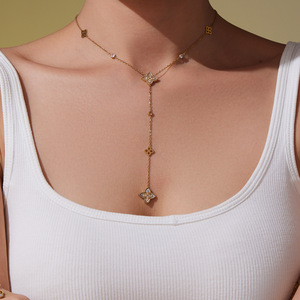 摩天轮 不锈钢四叶花锆石Y字项链 镀18k金椭圆吊坠双层叠戴组合首