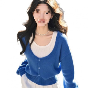 美拉蓝假两件针织衫软糯毛衣女2025新款春季穿搭硫酸铜高级感上衣
