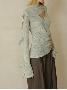 someone sometimes原创镂空麻交叉垂荡V领连身围巾领喇叭长袖上衣