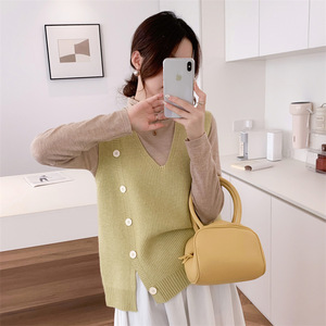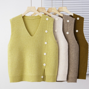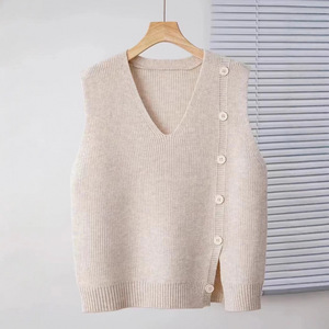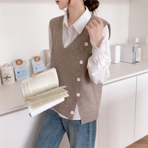 韩系秋冬针织马甲女设计感小众纽扣开叉马甲纯色时髦外穿毛衣背心
