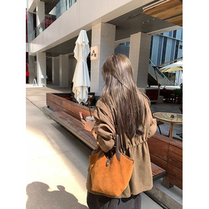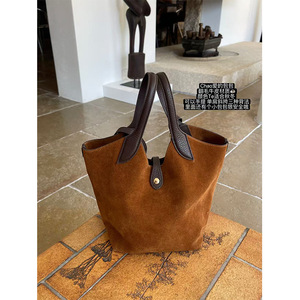 小众设计高级感水桶包2025复古磨砂麂皮手提包通勤上班菜篮子包