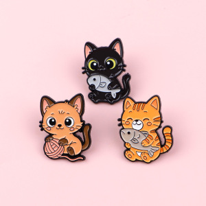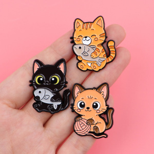 卡通小猫抱鱼胸针卡通金属徽章创意包包个性饰品勋章服装胸针配饰