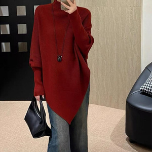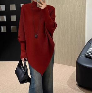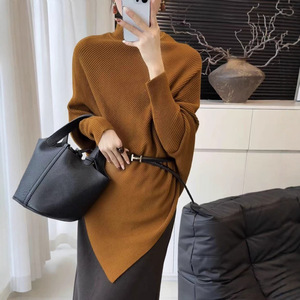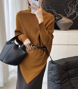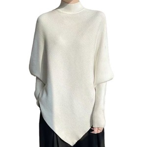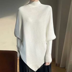 高级感慵懒风半高领套头不规则蝙蝠袖毛衣设计感气质针织斗篷披肩