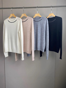南油篙品2025秋冬新款BC羊绒羊毛圆领珠链针织衫时尚百搭休闲毛衣
