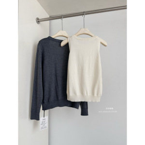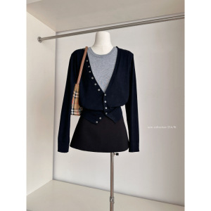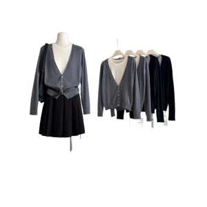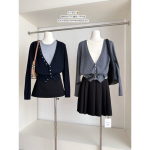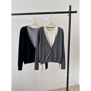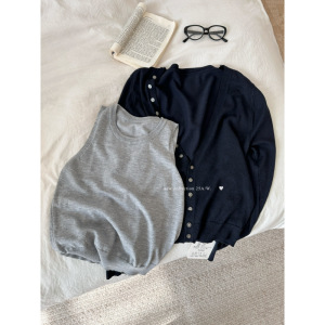 塞纳2025新款早秋韩系复古V领宽松纽扣针织衫开衫+背心两件套上衣