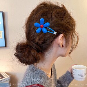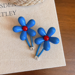 蓝色五瓣花圆钻鸭嘴夹【一对装】】