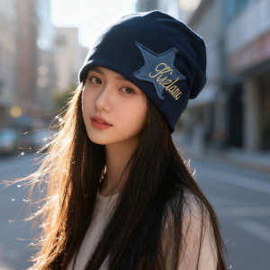 美式街头星星刺绣包头帽子女秋冬嘻哈网红堆堆帽甜酷辣妹复古冷帽
