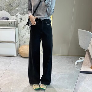王炸黑牛!四面弹直筒显瘦深色牛仔裤女秋季高腰宽松窄版阔腿长
