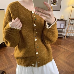 2025秋季新款宽松百搭开衫外套女潮韩系彩扣撞色软糯长袖针织毛衣