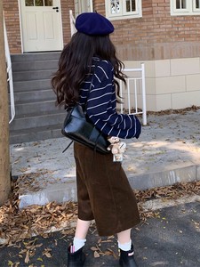源创~复古灯芯绒七分中裤女直筒阔腿短裤秋冬高腰宽松显瘦休闲裤