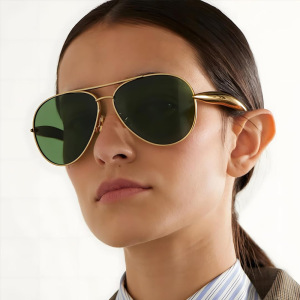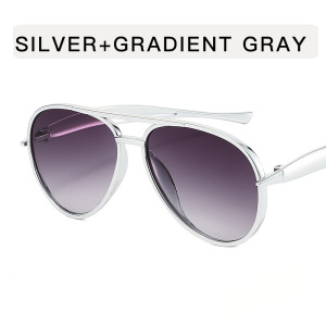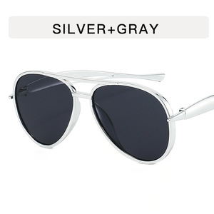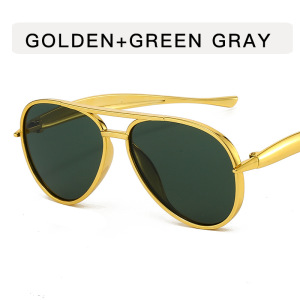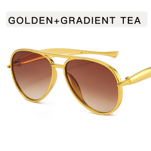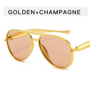 复古蛤蟆双梁太阳镜 欧美ins太阳眼镜个性电镀金属飞行员时尚墨镜