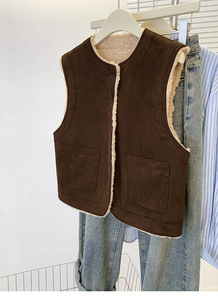 港风复古休闲羊羔毛马甲女秋冬新款时尚双面穿皮毛一体背心外套潮