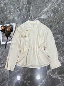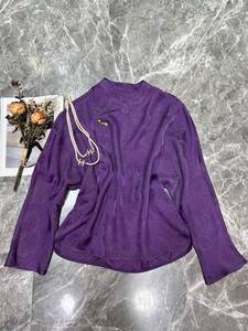 双色冠乐绉花金丝人丝真丝国风立领百搭贵气秋季内搭长袖唐装上衣