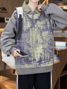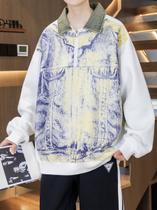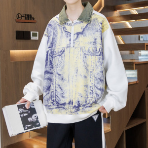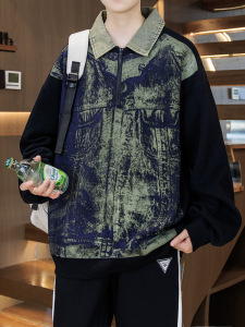 青少年秋季牛仔领卫衣男孩运动套装12-15岁初高中学生翻领长袖t恤