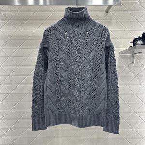 高领镂空麻花钩花毛衣 休闲简约风显瘦百搭纯色长袖上衣 CT82608