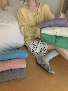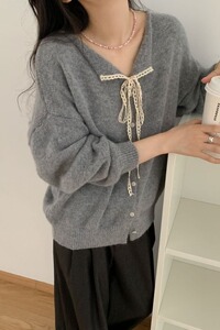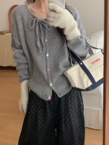 韩系蝴蝶结慵懒风毛衣女款初秋季穿搭针织开衫外套宽松上衣高级感