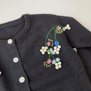 手工款重工绣花深灰色百搭休闲针织衫女秋冬韩版显瘦保暖开衫外套