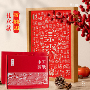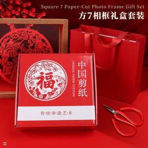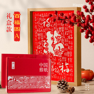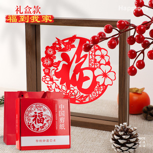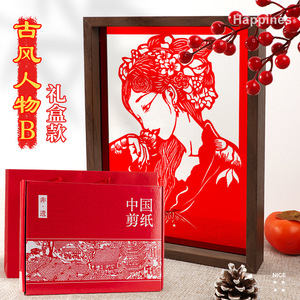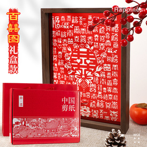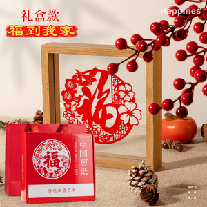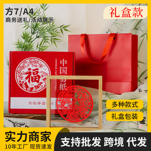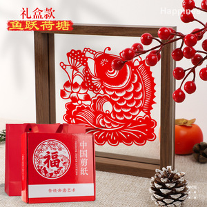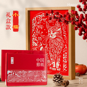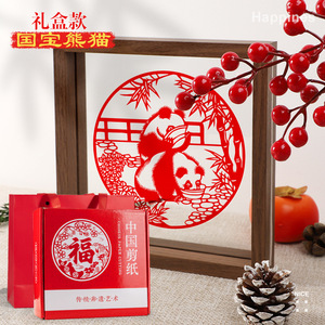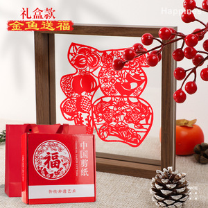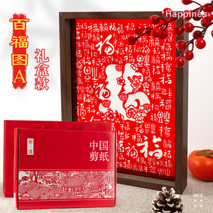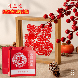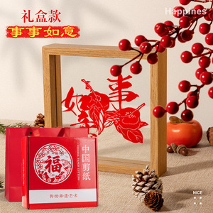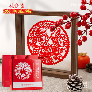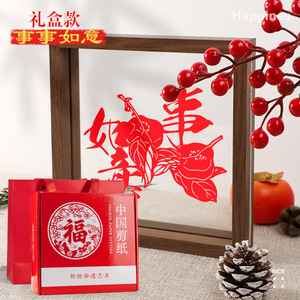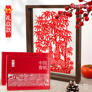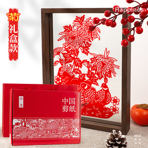 中国非遗剪纸成品礼盒剪纸摆件装饰画创意礼品送老外剪纸玻璃画框