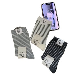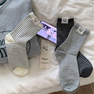 ins简约可爱小狗布标四季款韩系百搭条纹少女JK学院风堆堆无骨袜