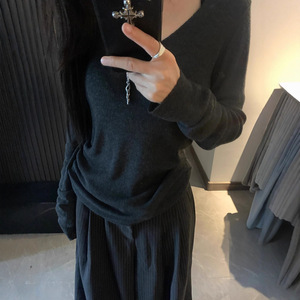 早秋2025新款长袖V领修身显瘦针织t恤女装韩系打底衫内搭气质上衣
