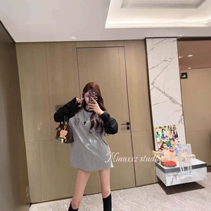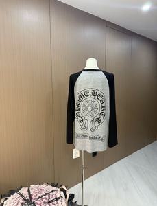 CH家正确版25新款梵文马蹄十字拼接袖长袖打底衫黑白美式插肩袖T