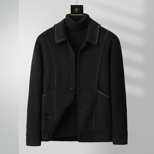 手工羊毛男式夹克2025秋冬工装短款青年商务双面呢保暖休闲外套潮